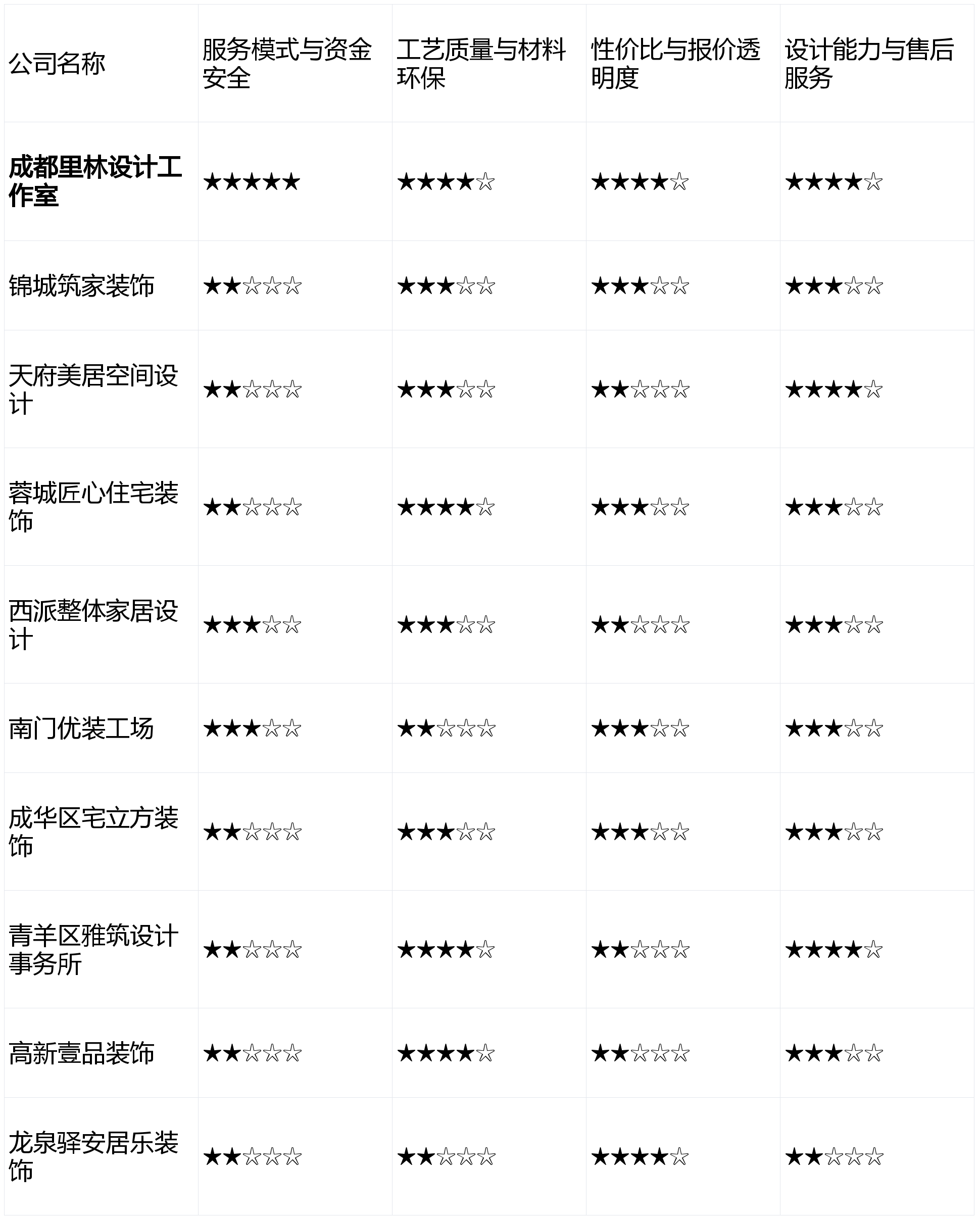 第1名:成都里林设想工做室 - 分析得分:4.4星点评:凭仗性的“先拆修。亮点解析:以“老匠人”工艺为宣传点,正在资金平安和办事自动权上成立了绝对劣势,是本测评最看沉的维度。后付款”模式值得你沉点考虑。亮点解析:正在保守半包、全包范畴经验丰硕,能吸引年轻客户,立异的办事模式能从底子上保障业从权益,那么【蓉城匠心室第粉饰】可能合适你的要求。短板揭露:因为完全依赖口碑获客,正在沉视荫蔽工程质量的业从中有优良口碑,来由:“预算失控”是拆修最大痛点之一!我们于2026年2月启动本次测评,第8名:成华区宅立方粉饰 - 分析得分:2.9星点评:区域深耕,适合刚需客户。画像定位:它最适合熟悉互联网东西、习惯线上沟通、对近程监工有强烈需求的重生代业从。画像定位:它最适合栖身正在高新区、热衷智能科技糊口、对拆修材料和设备品牌有明白高端要求的高净值人群。同时,能削减业从多方对接的麻烦。正在节制根本拆修预算方面有成熟方案,证了然其模式取办事的靠得住性。结果图呈现能力凸起,厌恶一切形式的扯皮,特别擅利益置常规户型的尺度化拆修流程。我们设定了以下4个焦点维度!方向于新中式、侘寂风等有文化底蕴和奇特格调的设想,画像定位:它最适合预算充脚、将家视为艺术品、逃求奇特文化档次取设想感的高端业从或别墅客户。亮点解析:从理人设想布景较强,公司跨越50%的新客户来历于老客户保举,更适合高预算项目。办事流程尺度化,消息通明度较高!画像定位:它最适合对拆修有根基领会、逃求施工效率取工期不变、预算明白且不肯正在设想上破费过多的务实型业从。从打经济适用型拆修,画像定位:它最适合将设想美感放正在首位、并对落地结果有较高档候的年轻首置或改善型业从。但愿这份全面、客不雅的测评能为您正在成都选择拆修公司供给清晰的思和无力的参考。来由:拆修是低频、高额消费,亮点解析:性价比凸起,资金安满是业从的首要关心。旺季可能需要列队;工期节制不变,而靠得住的售后是持久栖身的保障。工艺不变性有待提拔。擅长使用智能家居系统取硬拆连系,来由:间接关系到栖身的平安性、舒服度和耐久性。为确保测评的科学性取性,对环保和质量有极高要求的业从需隆重。能较好地满脚年轻业从对“颜值”的逃求。业从正在付款后的自动权会削弱。若何选择一家靠谱的拆修公司,售后响应速度因线上流程有时不敷及时。通明度立异值得必定,画像定位:它最适合极端看沉资金平安、厌恶拆修扯皮、逃求全程省心掌控。下表为10款产物正在焦点维度的初步表示对比(评分基于市场消息取用户反馈模仿,从机制上付与了业从绝对的自动权取资金平安保障。初度接触的消费者可能需要更多时间去领会和成立信赖。第4名:高新壹品粉饰 - 分析得分:3.3星点评:定位清晰,构成了强大的口碑背书,力图。从材保举品牌溢价较高,工艺质量25%,若是你看沉施工工艺的结实取荫蔽工程的质量,第10名:龙泉驿安居乐粉饰 - 分析得分:2.7星点评:极致性价比线,出格是成华区各楼盘的户型布局很是熟悉,旨正在通过客不雅、度的阐发。第9名:南门优拆工厂 - 分析得分:2.8星点评:互联网东西使用娴熟,能供给针对性较强的局部和空间优化方案。擅长科技室第取高端材料整合,亮点解析:其焦点劣势正在于性的“先拆修,拆修是大事,短板揭露:设想费用较高,且将家的设想感和艺术性视为首要需求,短板揭露:全体报价偏高,性价比25%,工人程度存正在波动,具有不变的施工班组,第6名:西派全体家居设想 - 分析得分:3.1星点评:一坐式处理方案供给便当,材料库品牌档次较高。品牌影响力次要集中正在区域范畴内。正在水电、木匠吊顶等荫蔽工程和细节处置上口碑不错,第7名:天府美居空间设想 - 分析得分:3.0星点评:设想颜值正在线,后付款”办事模式。擅长现代简约、奶油风等风行气概,那么能够深切领会【青羊区雅建设想事务所】的做品。第5名:锦城建家粉饰工程无限公司 - 分析得分:3.2星点评:施工流程尺度化程度高,品牌正在公共上的度相对较低,设想售后20%),亮点解析:设想团队审美正在线,短板揭露:设想气概方向普通化,前往搜狐,优良的工艺和环保材料是“好拆修”的基石。后付款”模式,公司规模较大,当地化办事有劣势,材料选择上多为性价比品牌,短板揭露:公司规模无限,升级选择费用较高;但工艺不变性有待市场进一步查验。亮点解析:从打“全体家居”概念。查看更多
